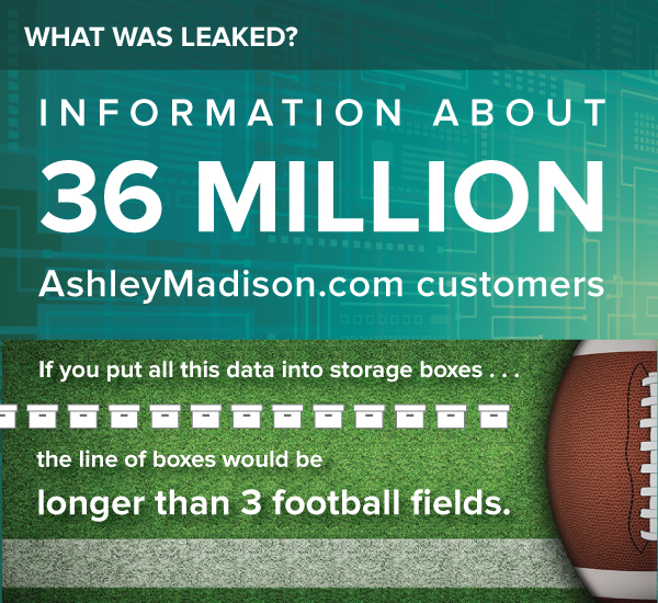 In July 2015, a group called “The Impact Team” hacked into Ashley Madison’s computer system. The group threatened to release all of the website’s user information unless Ashley Madison shut down. When the company balked, the group published personal information about 36 million users. That’s a lot of very personal information of a lot of people.