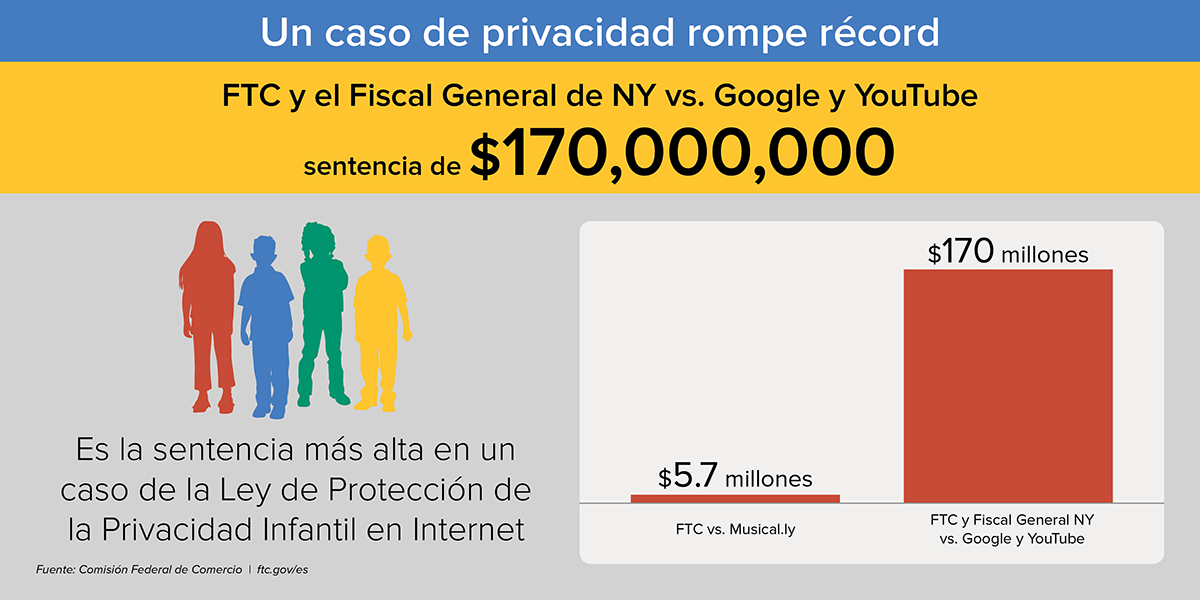 Google LLC y su subsidiaria YouTube, LLC pagarán una suma récord de $170 millones de dólares para resolver las alegaciones presentadas por la Comisión Federal de Comercio (FTC, por su sigla en inglés) y por el Fiscal General de Nueva York que indican que el servicio para compartir videos de YouTube recolectó ilegalmente información personal de niños sin el debido consentimiento de sus padres.
