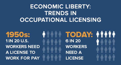 Nearly thirty percent of American jobs require a license today, up from less than five percent in the 1950s. For some professions, licensing is necessary to protect the public against legitimate health and safety concerns. But many more occupations could be practiced safely and effectively with fewer, or no, licensing requirements.